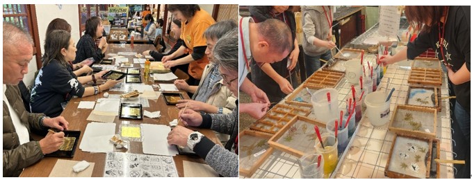 輪島塗(沈金体験)、金箔はり体験、山中漆器(蒔絵体験)、紙漉き体験の中から思い思いの体験を楽しみました。