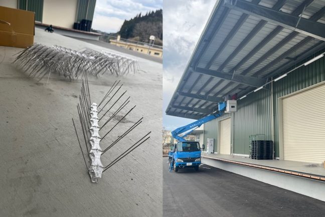 ここ1年で鳩の数が段々と増え、商品やトラックドライバーさんの背中にフンを落とす被害がでています。